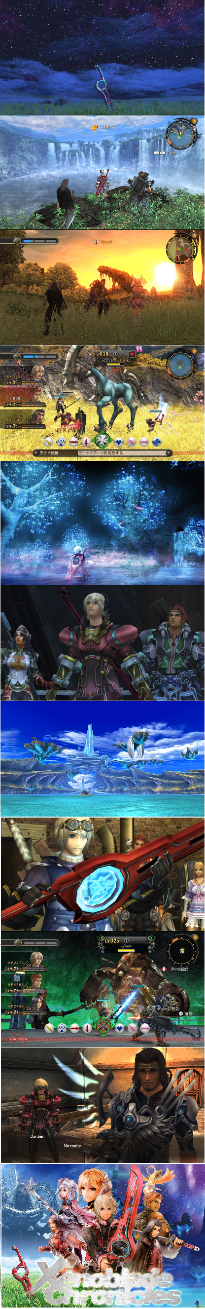 Og musikken i spillet, herregud... Allerede etter første filmsekvens i spillet ble jeg ønsket velkommen av denne storslagne perlen som førte til at jeg måtte stoppe opp og tenke at jeg nå har en helt spesiell spillopplevelse foran meg. Og merk mine ord, det stoppet ikke der. Hjemmefølelsen kom som lyn fra en knallblå himmel når jeg ble introdusert til hjembyen Colony 9, pustevanskene kom sigende ved første øyenkast ut over den mektige Gaur Plain, adrenalinet steg til himmels under både vanlige kamper, bosskamper og kamper der spillfigurer viser seg fra sin mest heroiske side. En følelse jeg enda ikke har klart å identifisere snek seg frem under Mechonis Field, utenfor portene til det gudommelige slottet Alcamoth, i den magiske Nopon skogen og både dette, dette og dette var låter som omtrent fikk meg til å begynne å grine. Disse stedene kunne jeg egentlig lagt fra meg kontrollen og bare stått i flere timer for å nyte øyeblikket. Samtlige låter i dette spillet er så latterlig velkomponert at jeg får frysninger på samme måte som man skulle trodd jeg hadde tatt et januarbad i en fjellkulp langt oppi Gudbrandsdalen. Jeg lyver ikke når jeg påstår at dette spillet har noe av den beste spillmusikken jeg vært borti i et spill til dags dato. Den var med å løfte stemningen og opplevelsen av spillet så til de grader at hjelpes meg... ord blir fattige i forhold.